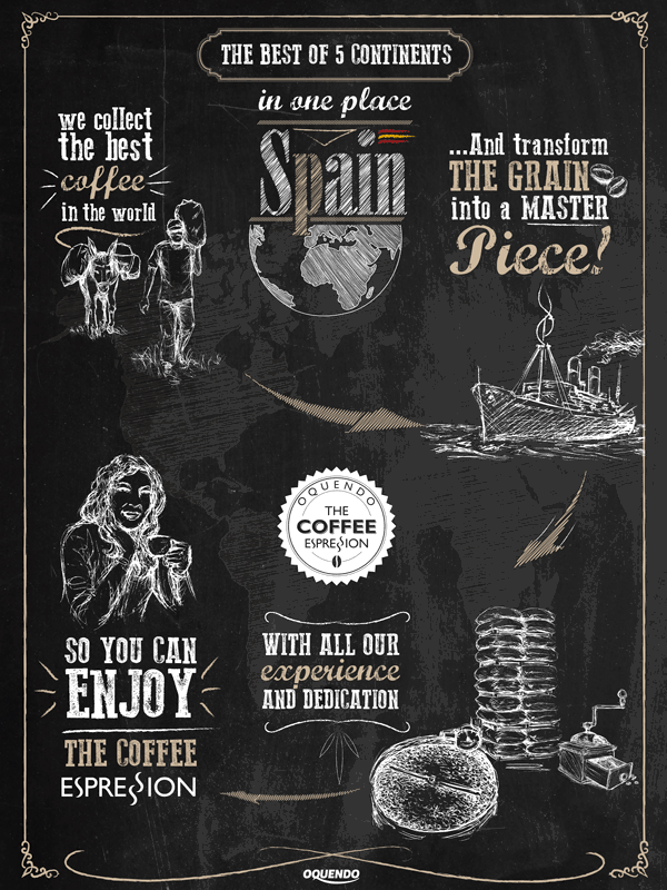 Es así que nace The Coffee Espression; un concepto de cafetería especializada en la venta de los mejores cafés del mundo para tomar in situ o llevar a granel, ofreciendo también otro tipo de productos como bebidas frías y una extensa selección de aperitivos complementarios que refuerzan y amplifican el impacto de la marca en el mercado objetivo.
