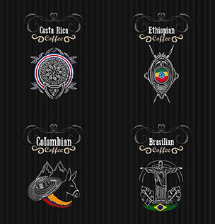 También integramos dentro de las etiquetas, el lugar de procedencia del grano, haciendo una conceptualización gráfica en forma de Key visuals, buscando representar los valores culturales más emblemáticos de cada uno de los países de origen.
