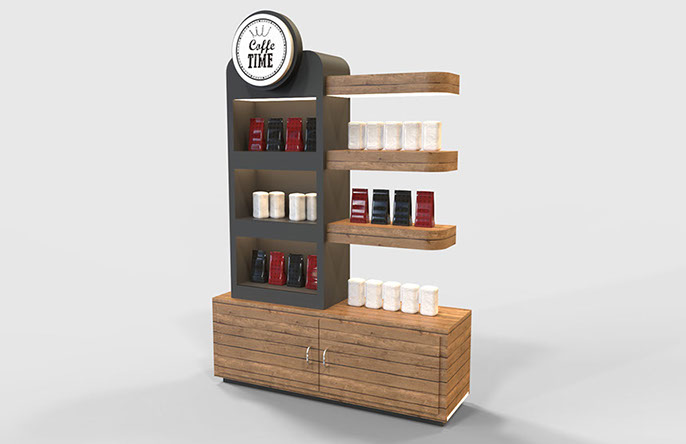 Para este proyecto, también fue esencial diseñar varias piezas de mobiliario y accesorios a medida para garantizar que el concepto definido a nivel de diseño se mantuviera coherente en toda la tiendaa: