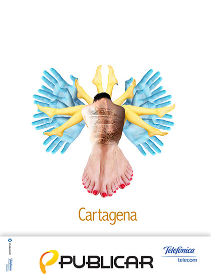 Desarrollar composiciones fotográficas simbólicas teniendo como recurso central el cuerpo humano, utilizando diversas partes del mismo para representar a un animal icónico de nuestra fauna colombiana. Deben existir zonas en la composición donde haya predominancia de piel para ubicar una fotografía de algún lugar representativo de la ciudad a la cual va dirigido el directorio.